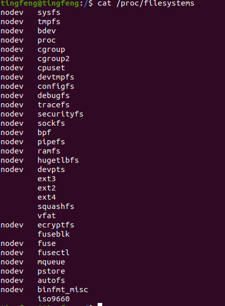 Linux系统也支持多种文件系统类型,可以在linux系统根目录的/proc目录下查阅filesystems