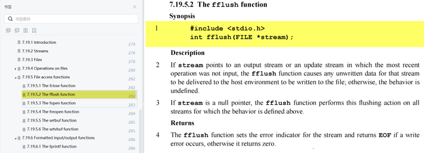 当然,全缓冲和行缓冲除了以上几种情况外,当程序结束时缓冲区也会被刷新,另外,也可以采用函数库中的fflush函数手动刷新缓冲区。